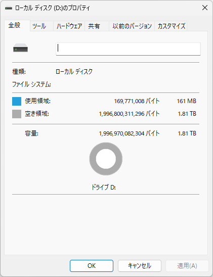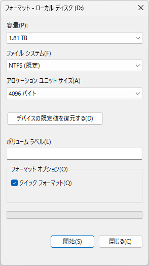 画像は500GBのHDDですが、記録としてスクショしたのは2.0TBのHDDなのでフォーマット後の使用容量に違いは有りますが、同様にフォーマット出来ました。