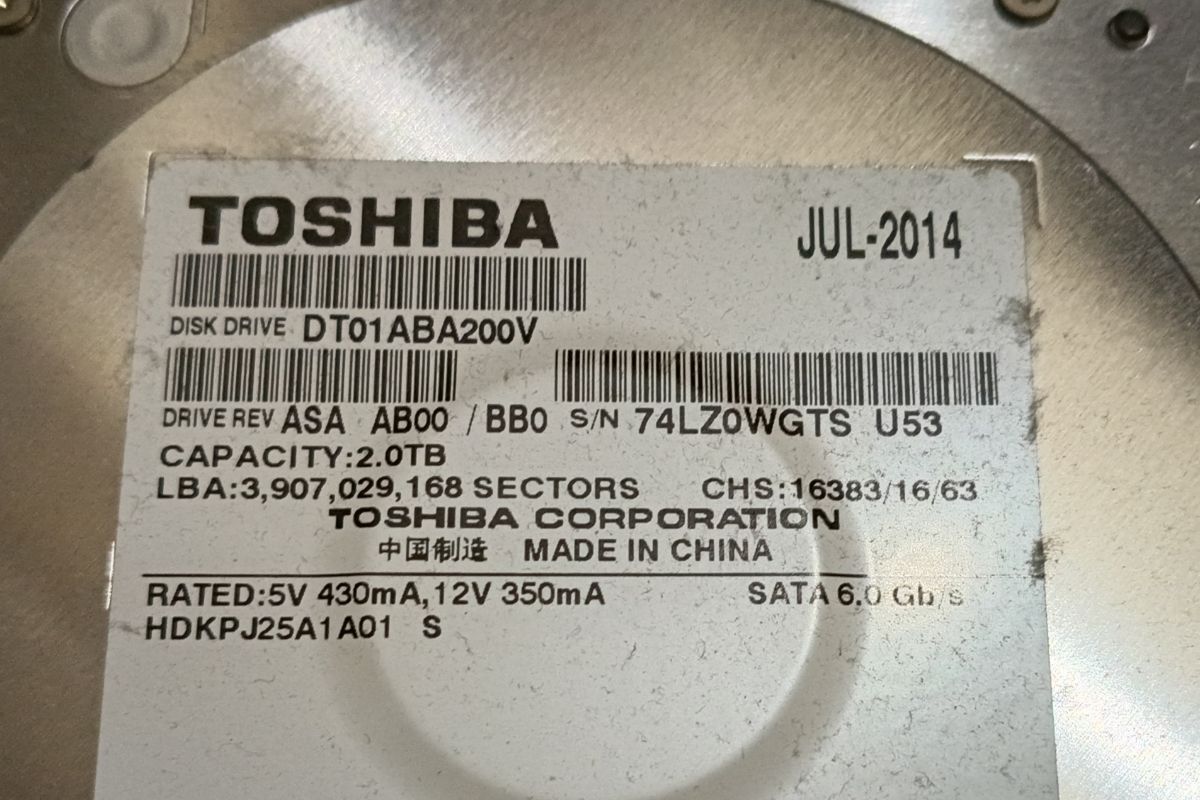 一枚目が2.0TBの3.5インチHDD(x2)タイムシフト用のHDD