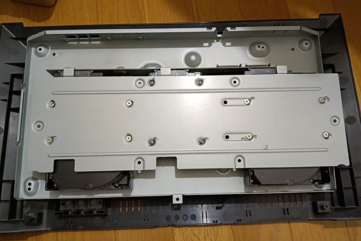 フリーにした後、右上の基盤と左上の基盤のコネクターを外してHDDのみにします。