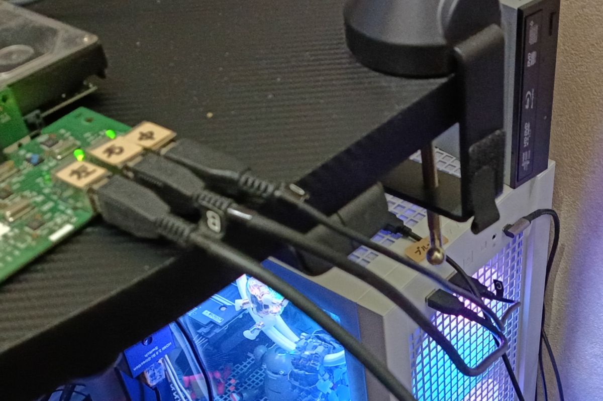 取り合えず認識するかの確認なのでPCケース前面のUSB端子に接続してみました。